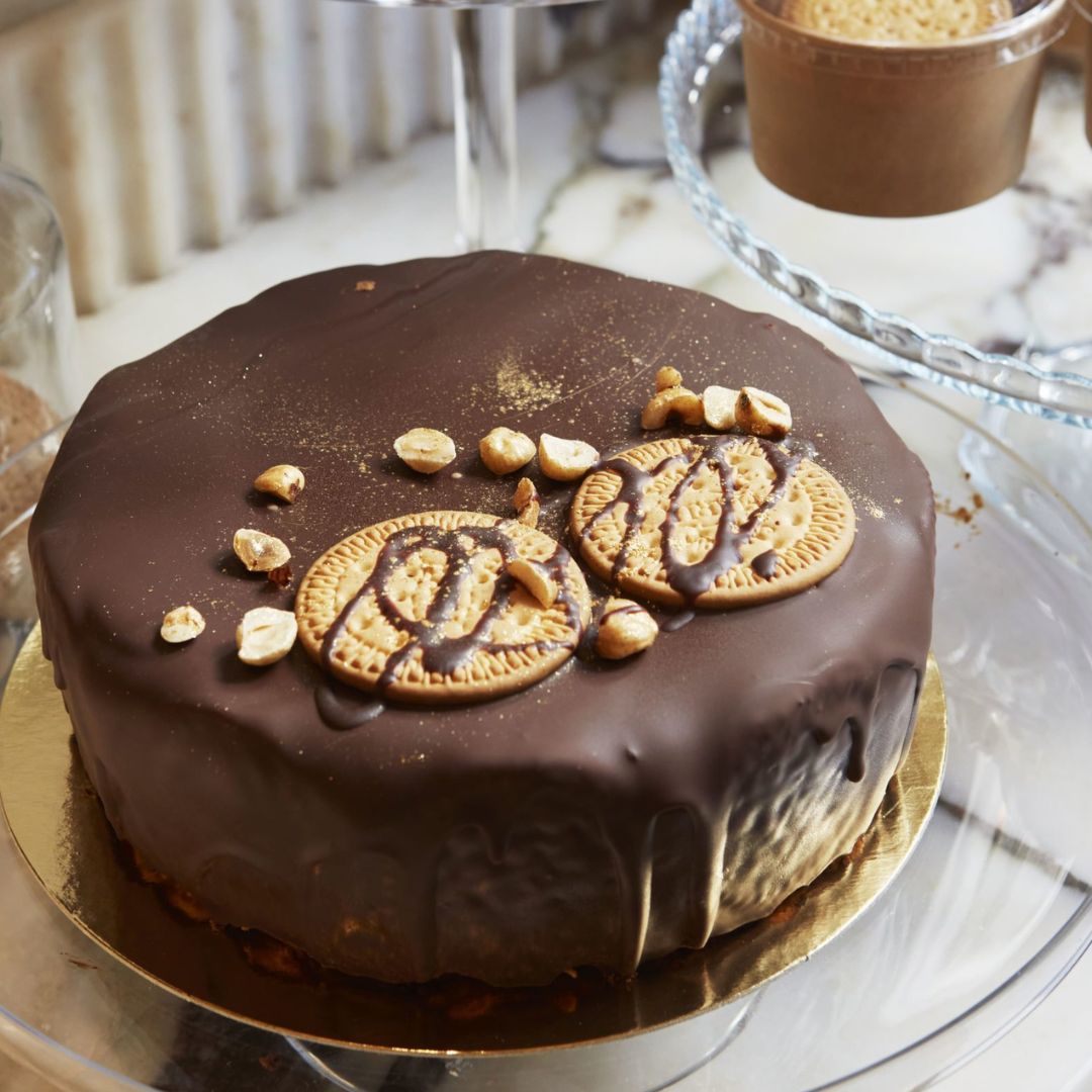 La clásica y original tarta de chocolate y galleta María, con deliciosas capas de mousse de chocolate con leche y galleta, como la hacíamos en casa. Nuestra tarta estrella. Se recomienda mantener en frio antes de consumir.